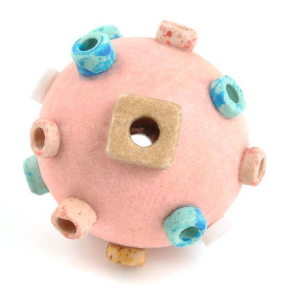 Avante Garde Picasso Beads, quality handmade ceramic kiln fired terra cotta/wood abstract beads. Due to the handmade nature of these beads shape, color, weight, designs, and size may vary.Shape/Style: Avante Garde Abstract Round Color: Pink + ColoursSize: 25mm Hole Size: 1.5mmQuantity: 1All Sizes Approximate