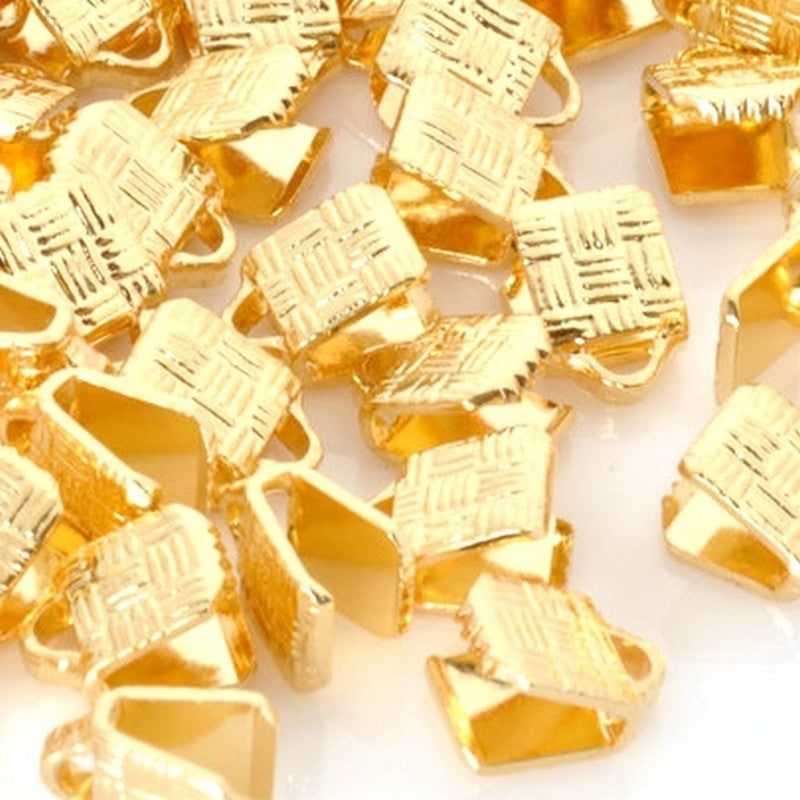 10mm Gold Plate Flat Crimp End-for leather and suede. Fits our 9mm Flat Braided Leather and 10mm Deertan Lace.