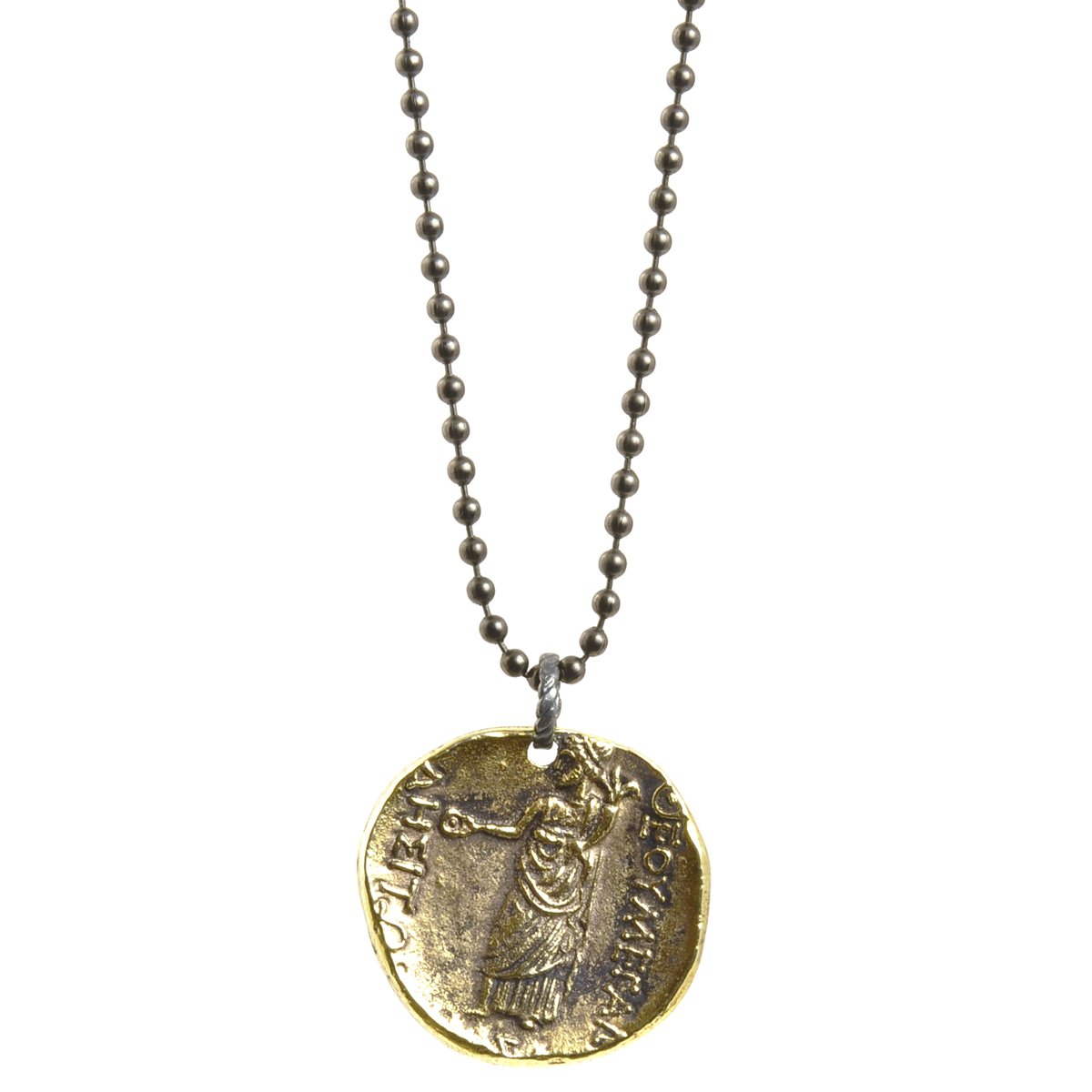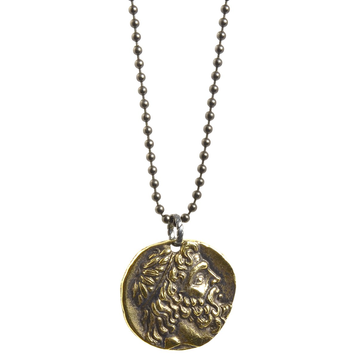 Antique gold "Greek coin" ball chain necklace with a simple elegant element for everyday. Wear this alone or with your favorite designs for a personalized eclectic look.