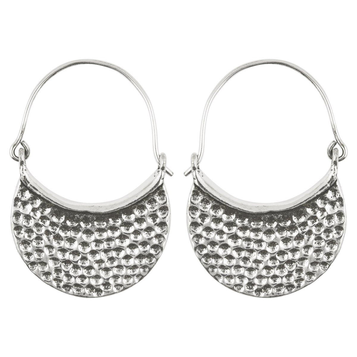 With their unique design and allure, these silver hammered earrings exude a confident sense of style. The silver plated nickel free solid brass hoops are randomly textured and sculptural, perfect for everyday.