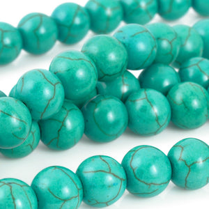 Gemstone-12mm Round Howlite-Green Turquoise-15 Inch Strand-Quantity 1