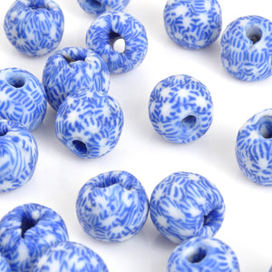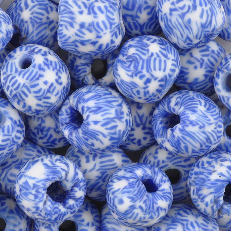 Glass Beads-14mm Fused Recycled-Ghana-Blue and White-Quantity 1