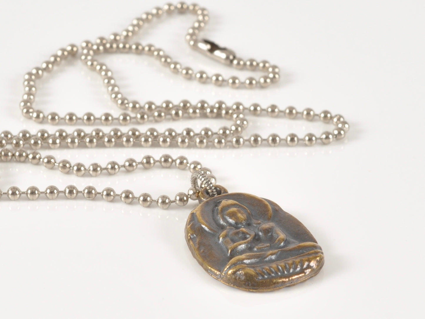 Finished Jewelry-Buddha-Antique Bronze-Nickel Silver Ball Chain Necklace-24 Inches