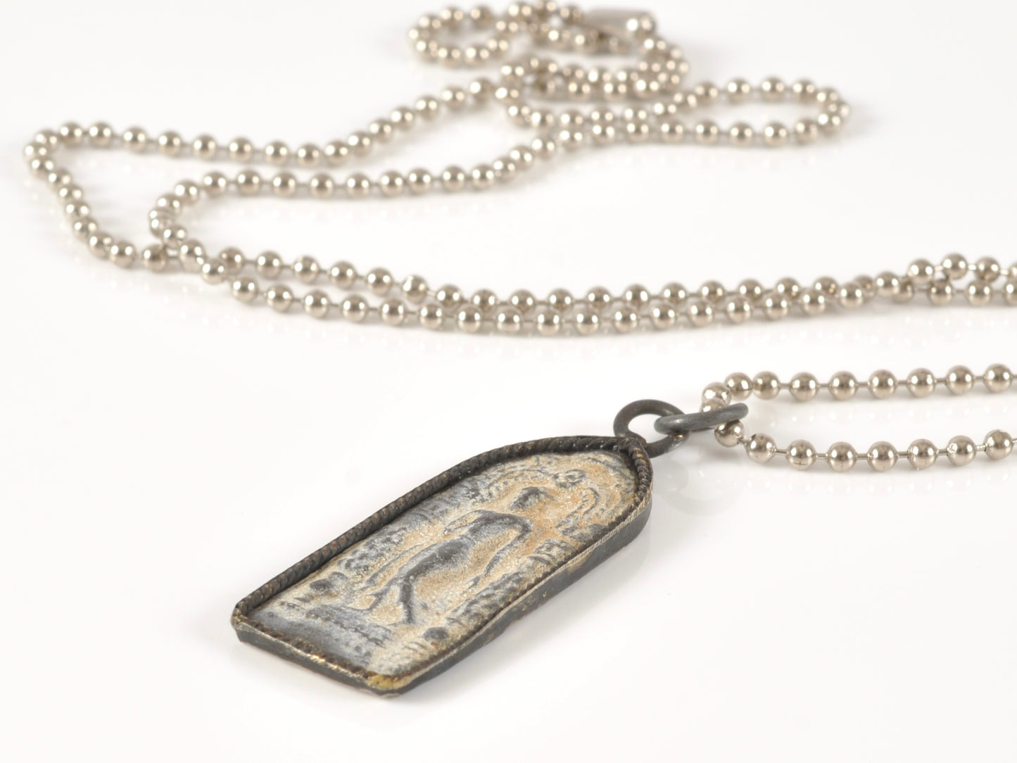 Finished Jewelry - Walking Buddha Necklace - Antique Patina Pendant on Nickel Silver Ball Chain - 24 Inches