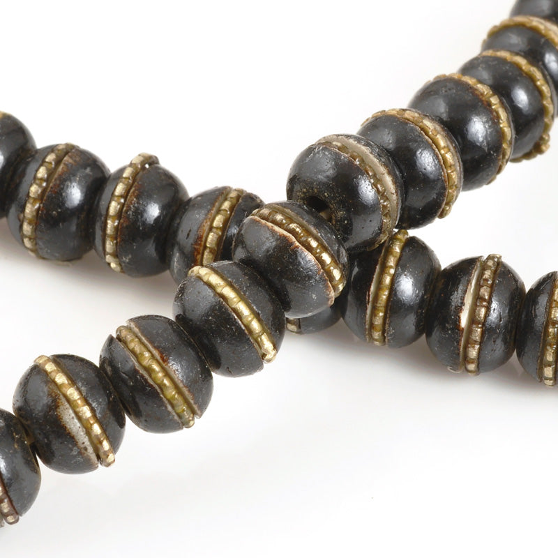 Contemporary Mala inlaid with silver. Made in Nepal. Due to the handmade nature of these beads, size, shape and finish may vary.