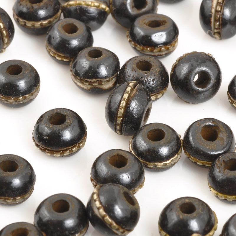 Size: 10mm Color: Black With Silver Inlay Hole Size: 2mm Type: Mala Beads with Inlay (Bone) Quantity: 5 Beads (Loose)