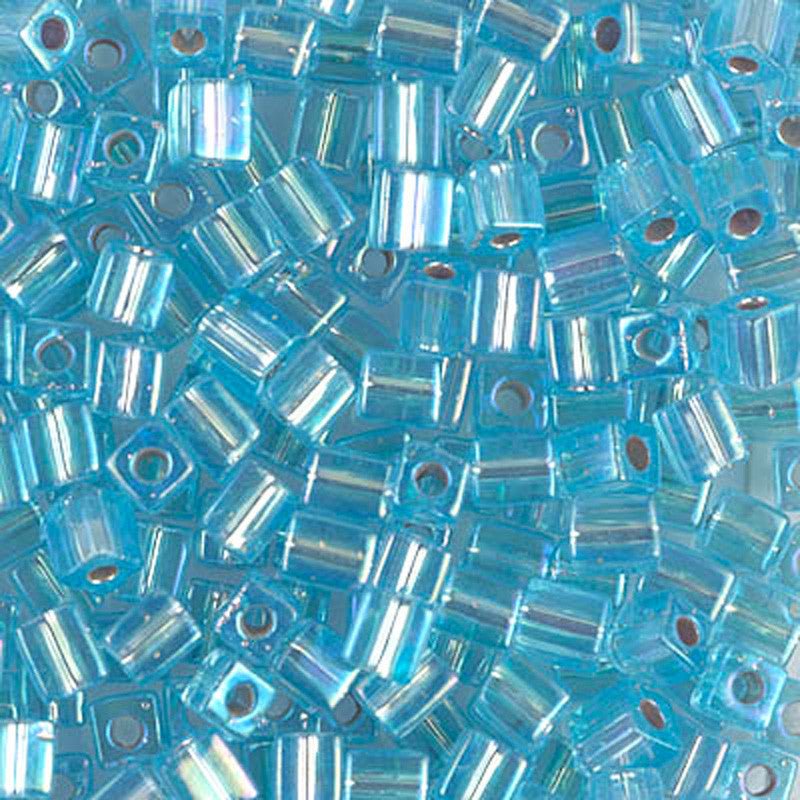 Seed Beads-4mm Cube-1018 Silver Lined Aqua AB-Miyuki-7 Grams