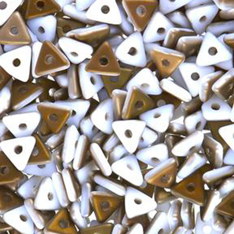Tri-bead, a small triangle shape approximately 4.5 mm, 1mm thin and with a hole approx 1 mm.