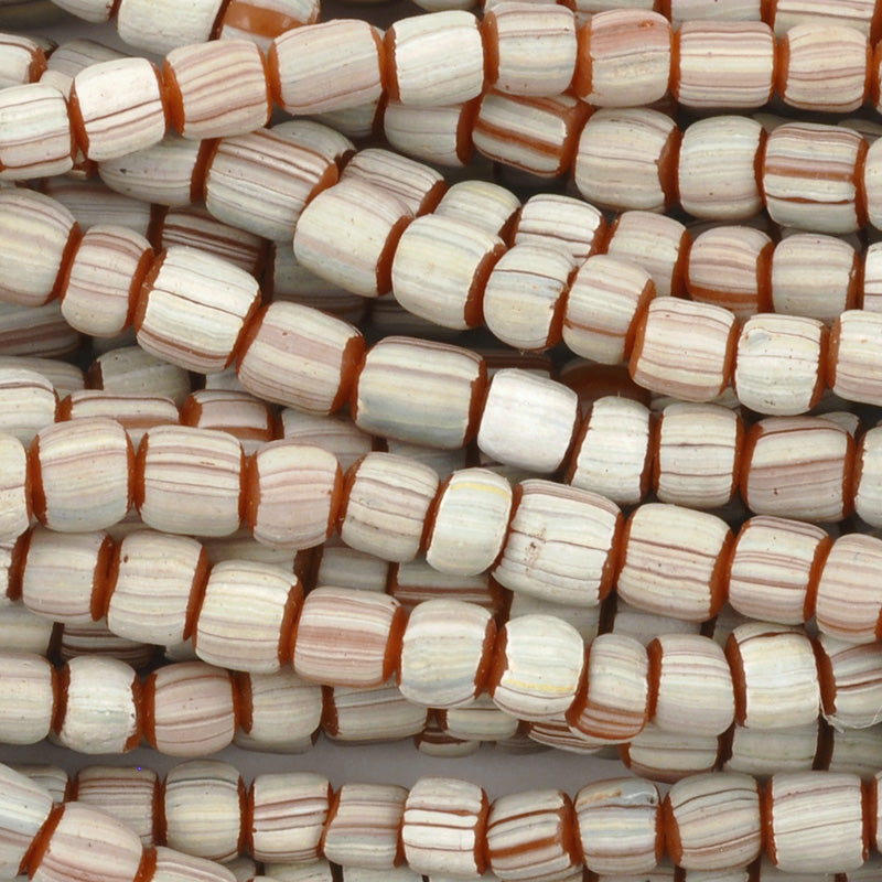 African Trade Bead glass seed bead reproductions from Indonesia. The beads are slightly graduated in size and shape.