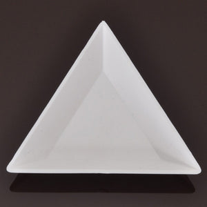 "A clever way to organize beads while you work. Pick up, sort, and pour beads. The triangle shape & angled edges allow you use these trays as clever little bead scoops to chase down errant beads. Sort your beads into different trays while you are working. When you are ready to put your beads away, pour them directly from any corner into small bags, tubes, or compartments. So lightweight we use them as tray on bead weighing scales. These trays nest, so they are easy to pack along for beading on the go. Measurements: 3-1/4 inch x 1/4 inch H."